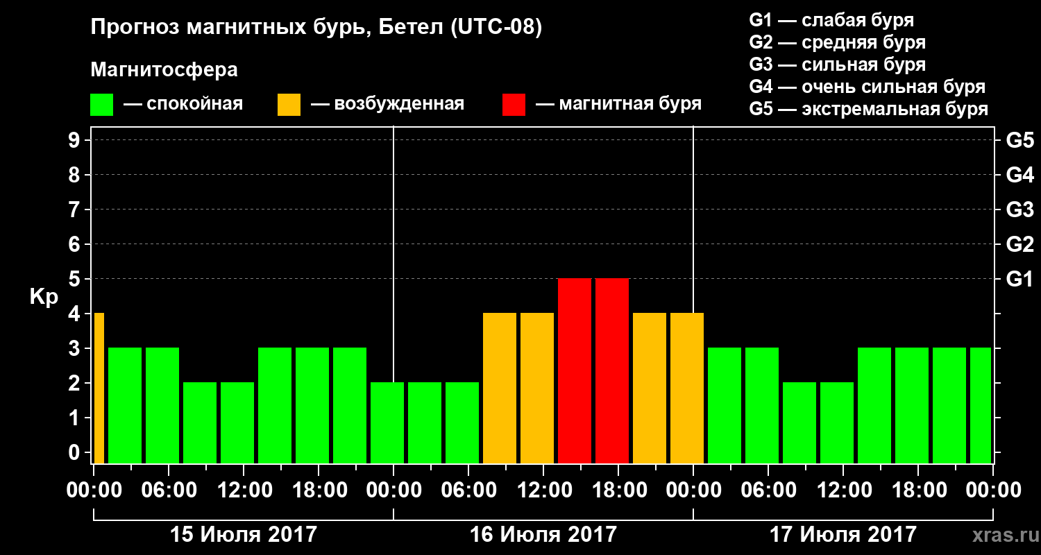 Прогноз магнитных бурь в Бетеле — 15 июля 2017 года