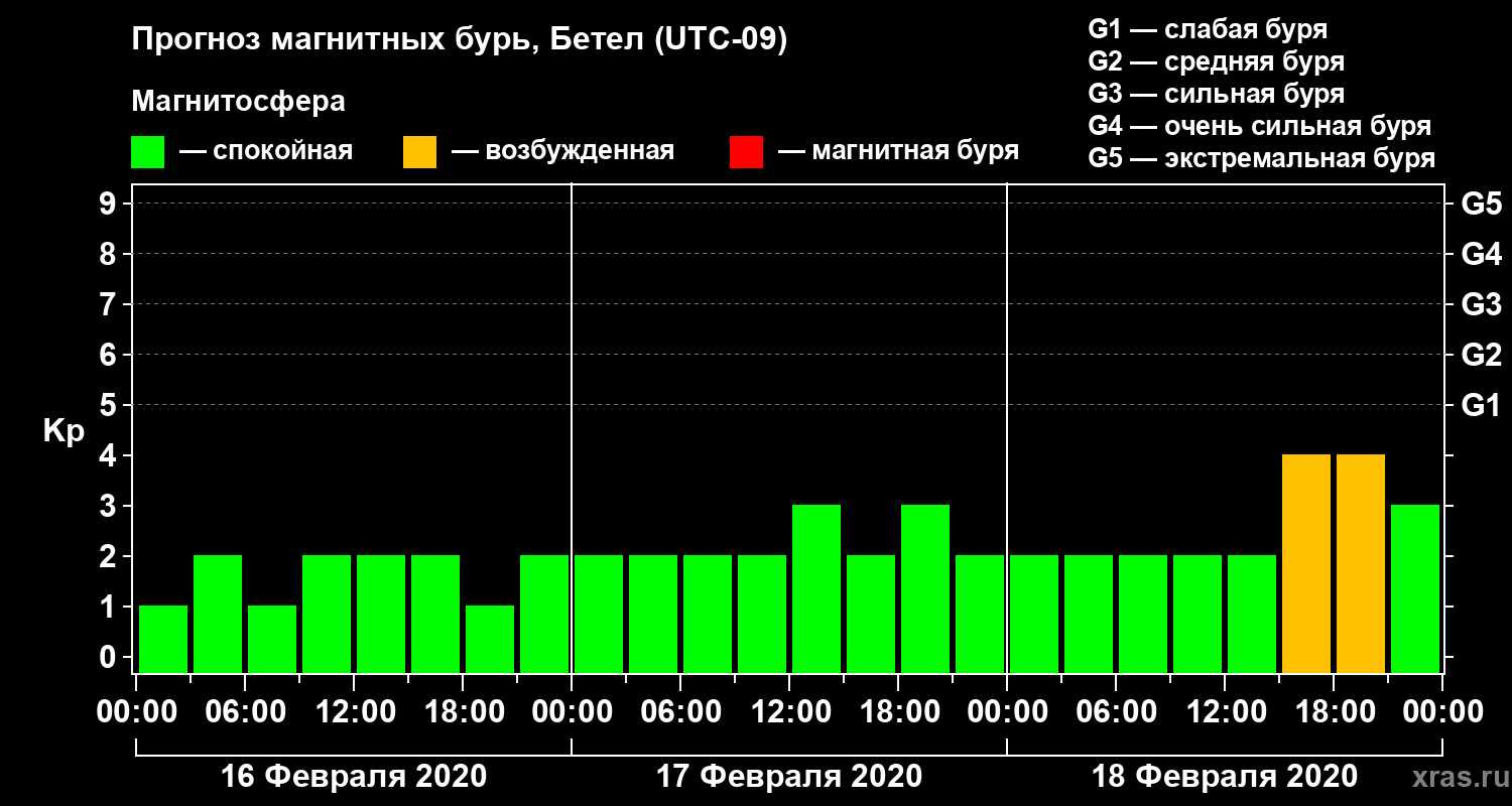 Прогноз магнитных бурь в Бетеле на 16 февраля 2020 года