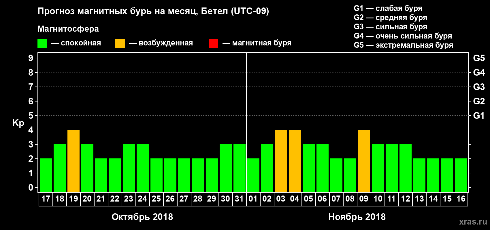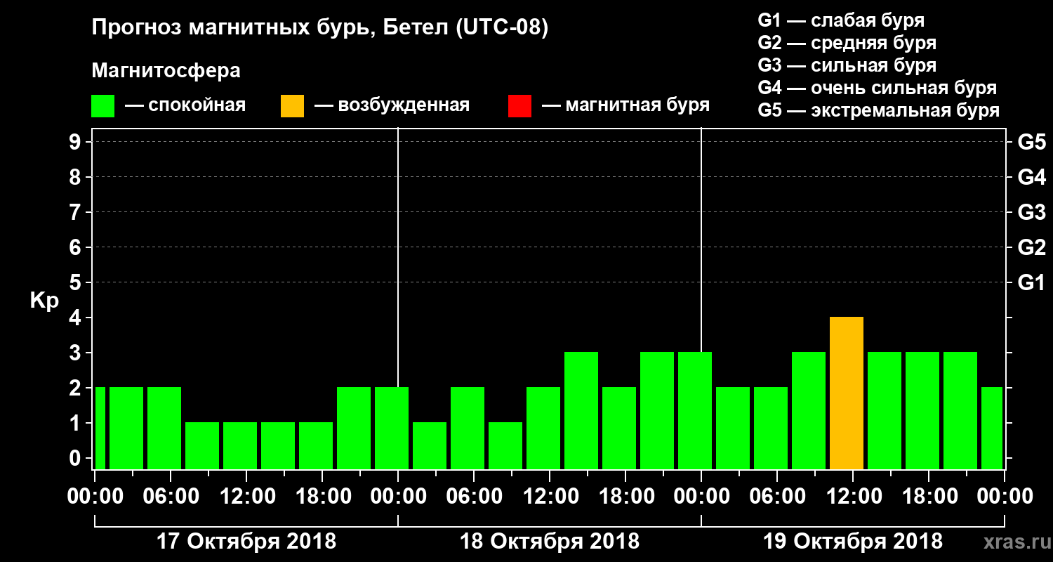 Прогноз магнитных бурь в Бетеле — 17 октября 2018 года
