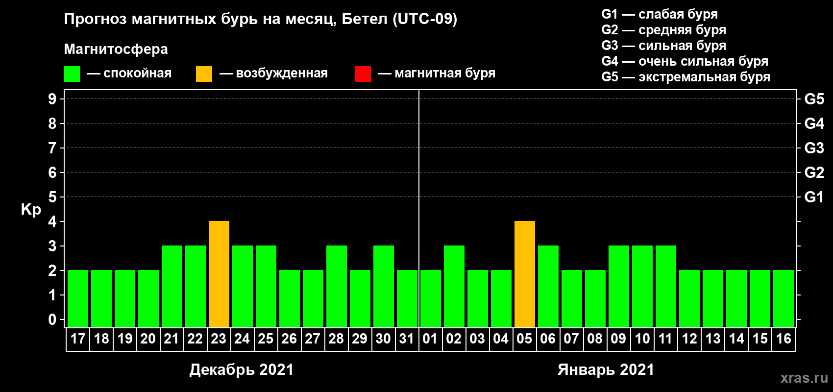 Прогноз магнитных бурь в Бетеле — 17 декабря 2020 года