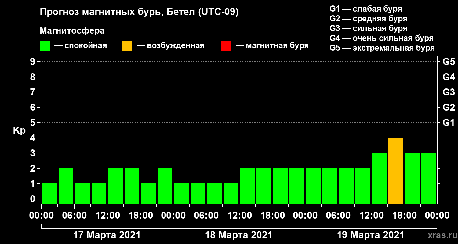 Прогноз магнитных бурь в Бетеле — 17 марта 2021 года