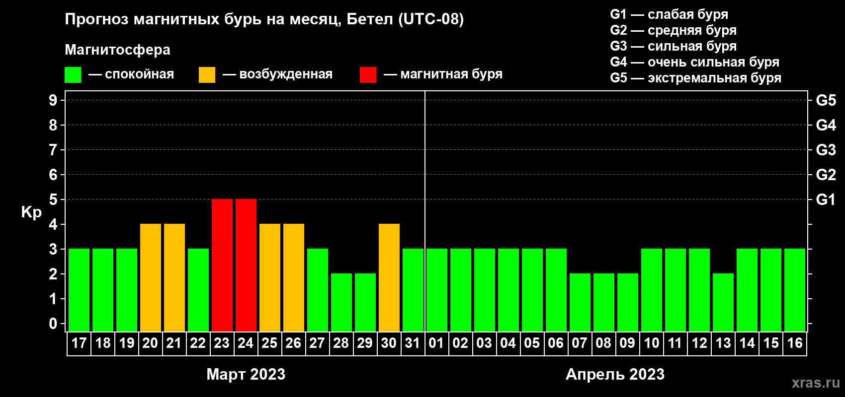 Прогноз магнитных бурь в Бетеле — 17 марта 2023 года
