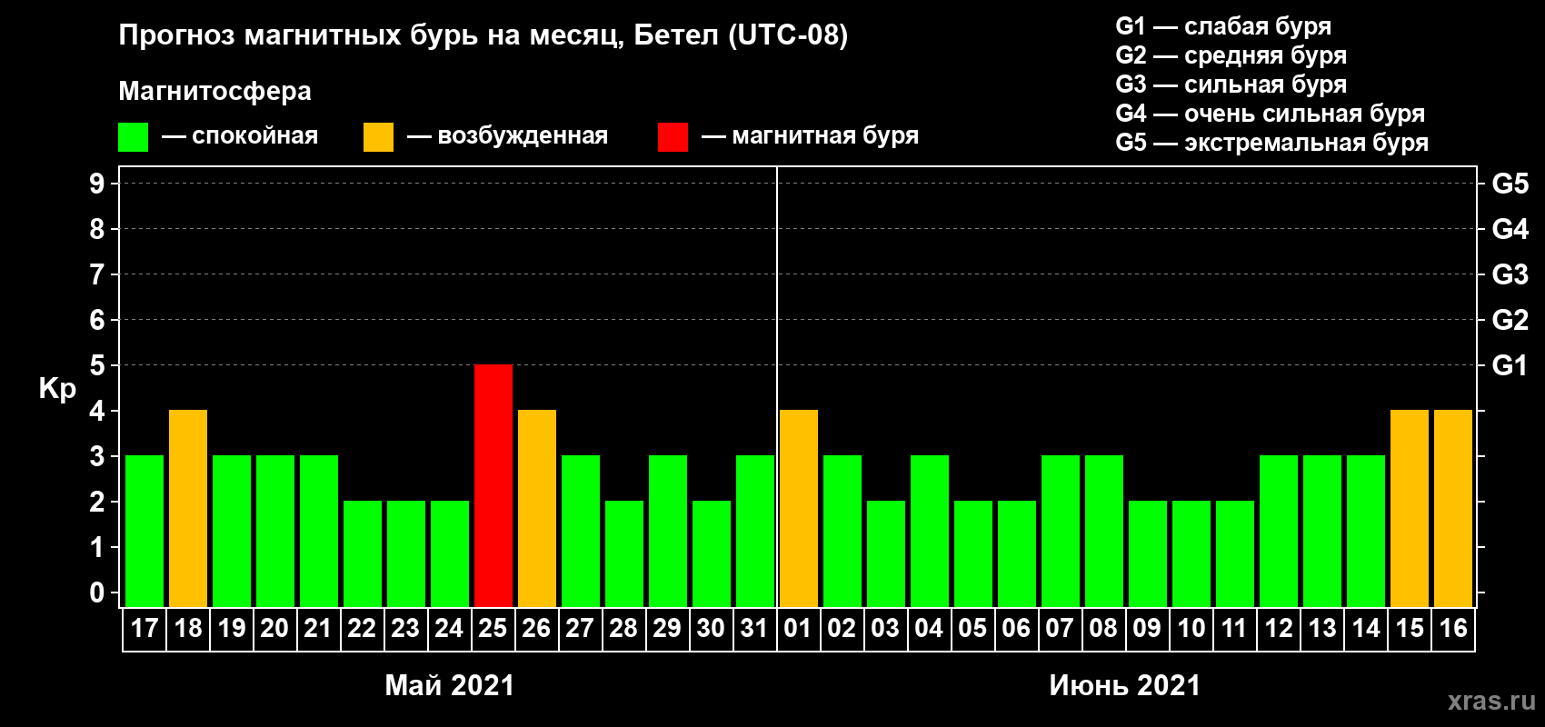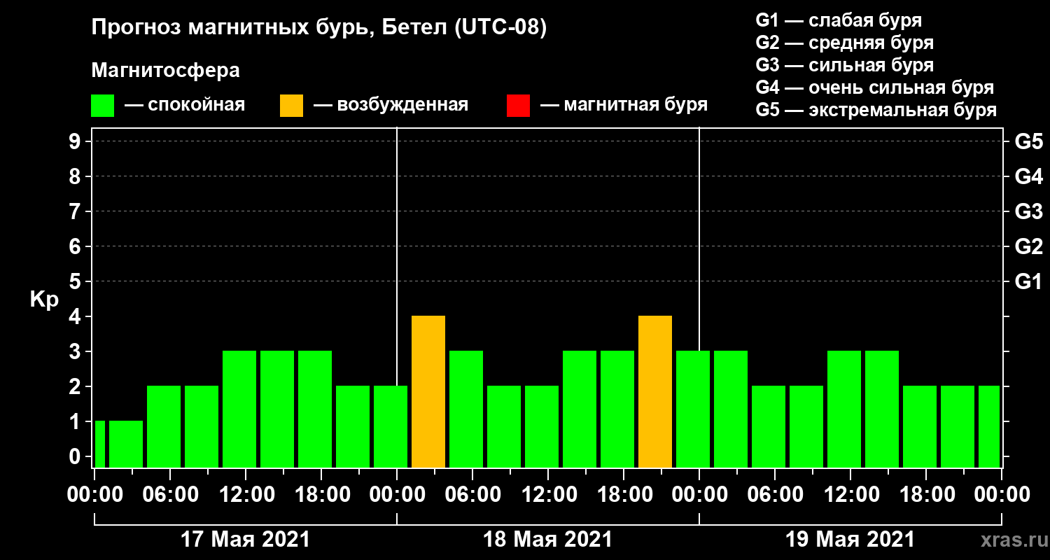 Прогноз магнитных бурь в Бетеле — 17 мая 2021 года