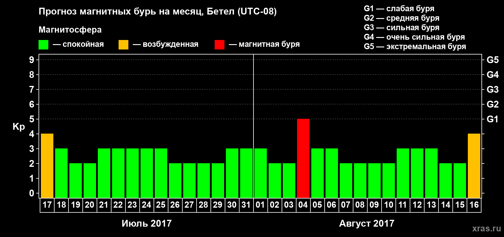 Прогноз магнитных бурь в Бетеле — 17 июля 2017 года