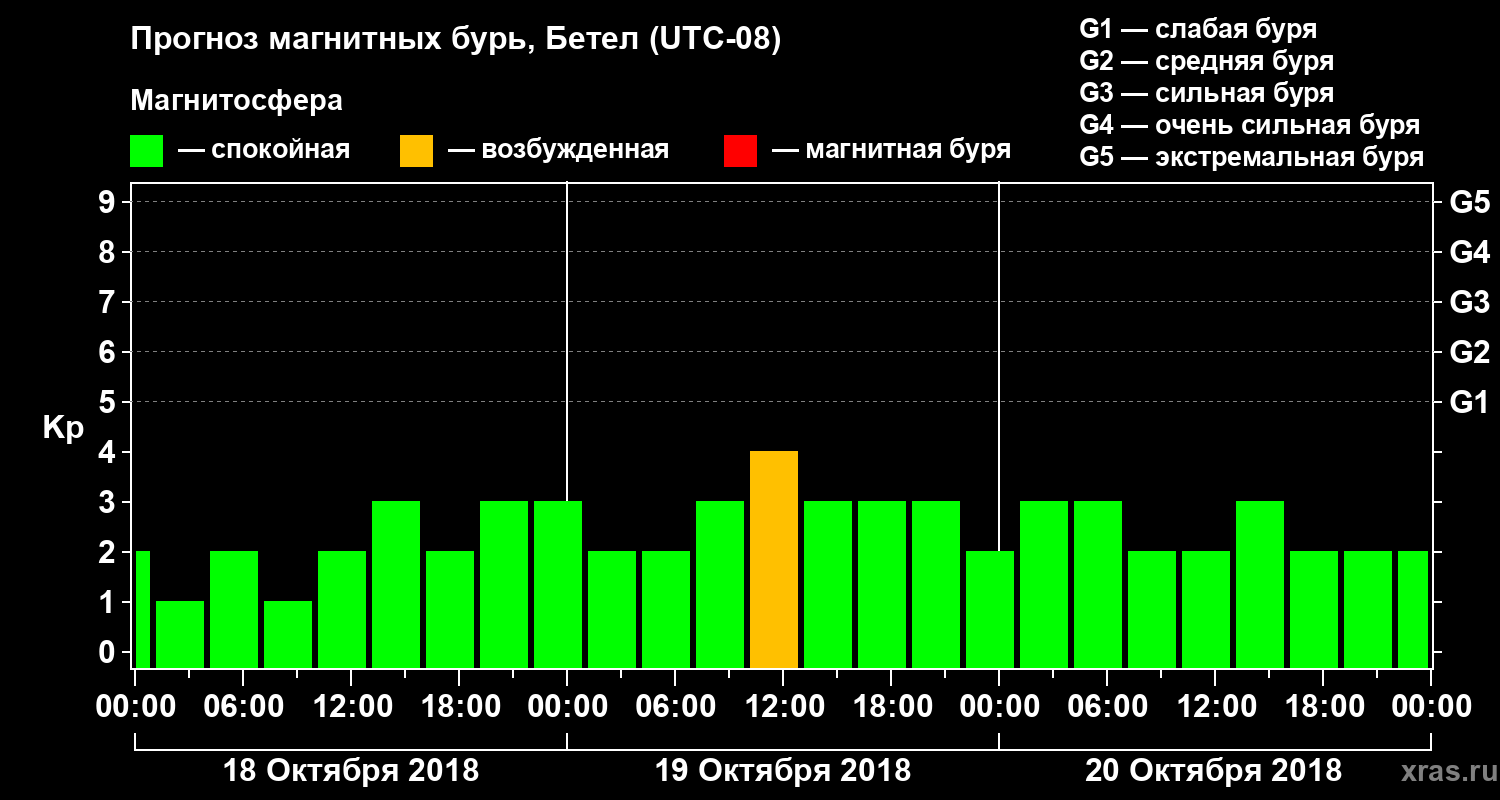 Прогноз магнитных бурь в Бетеле — 18 октября 2018 года