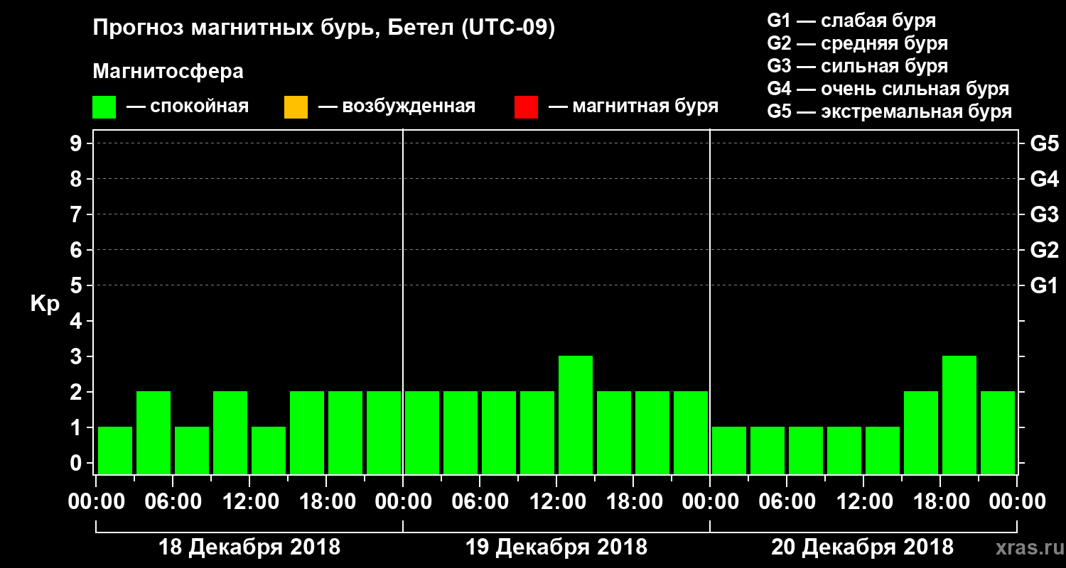 Прогноз магнитных бурь в Бетеле — 18 декабря 2018 года