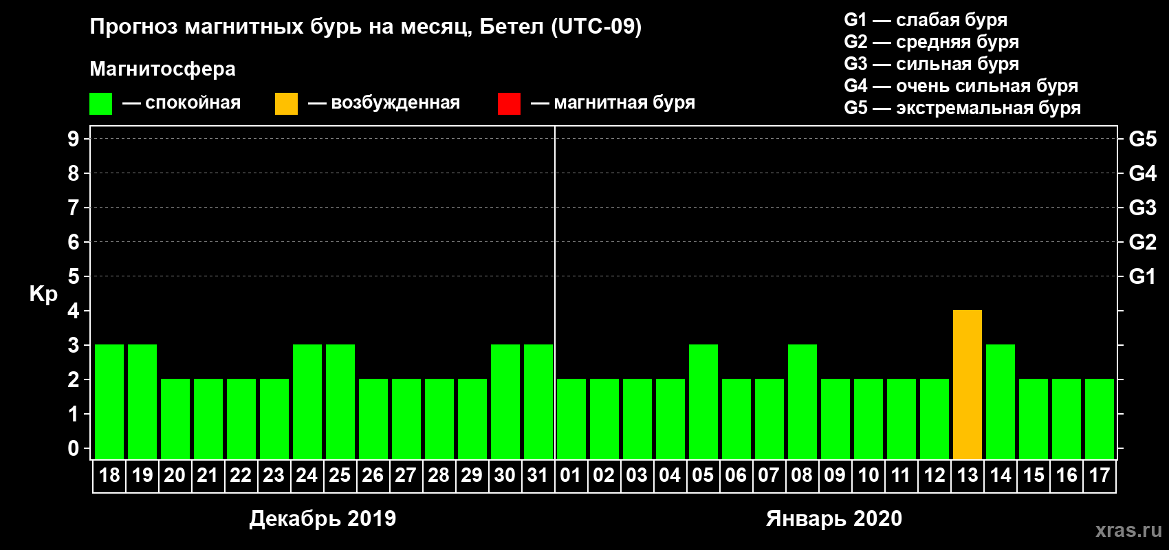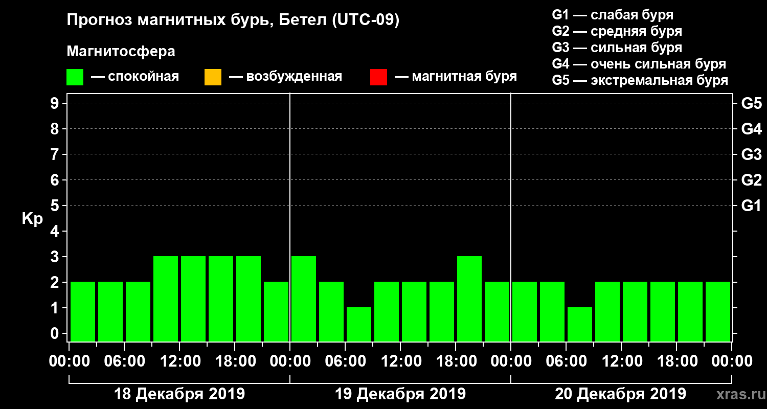 Прогноз магнитных бурь в Бетеле — 18 декабря 2019 года