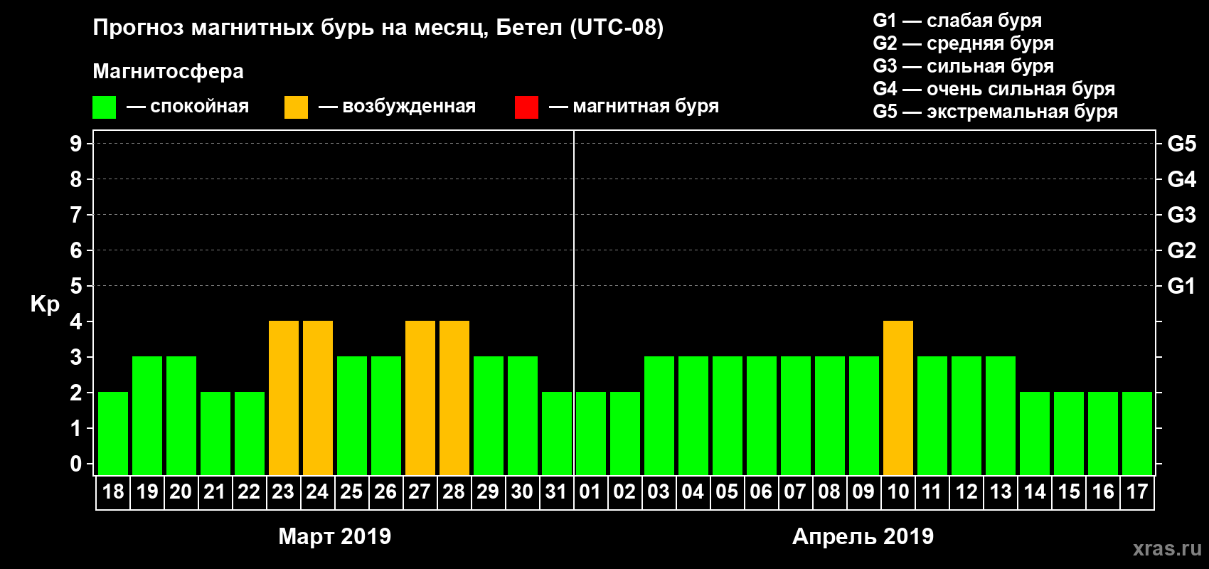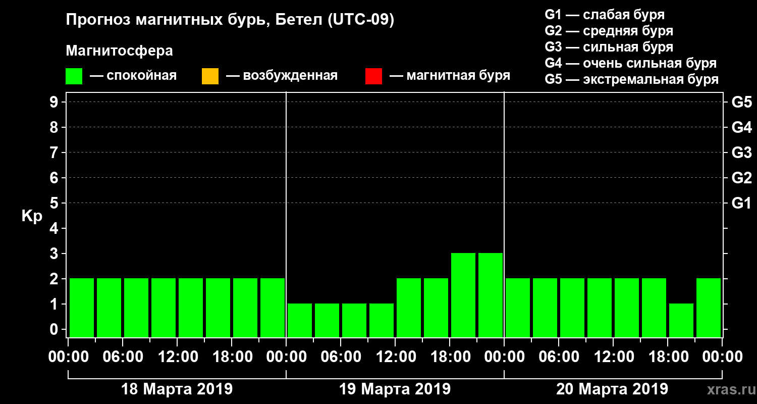 Прогноз магнитных бурь в Бетеле — 18 марта 2019 года