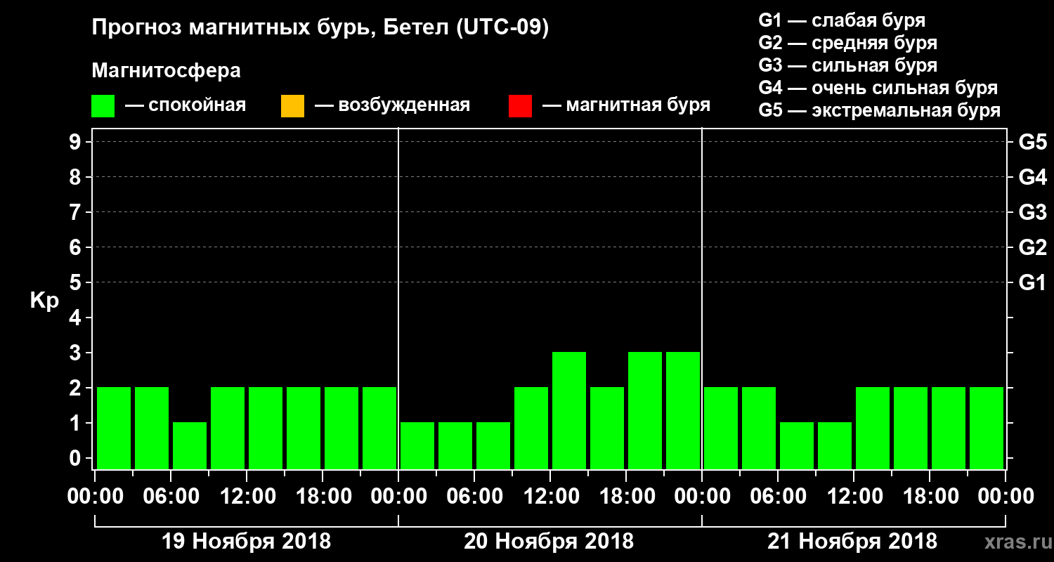 Прогноз магнитных бурь в Бетеле на 19 ноября 2018 года