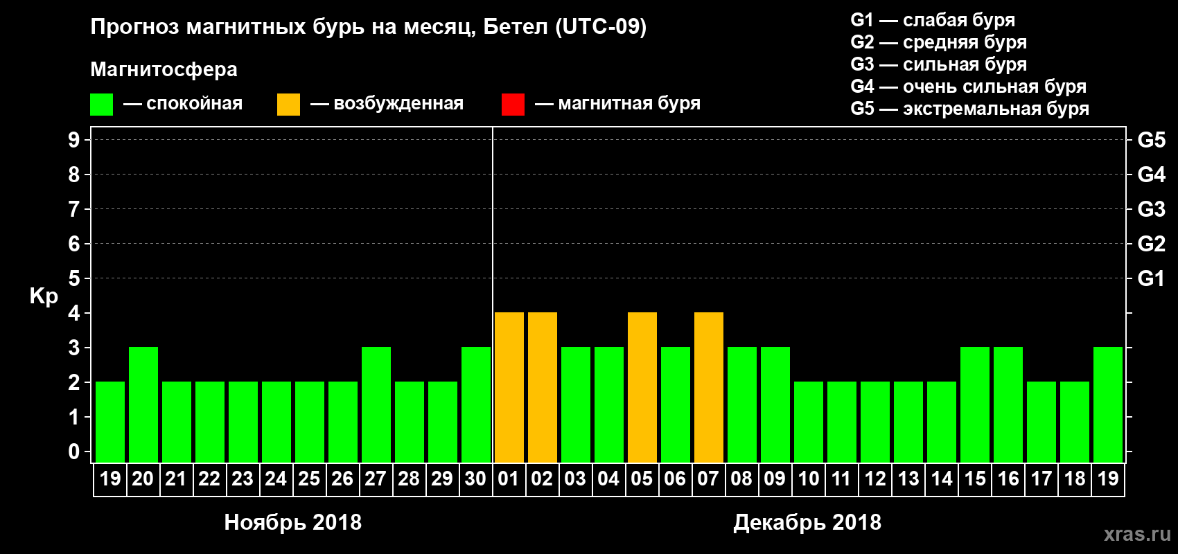 Прогноз магнитных бурь в Бетеле — 19 ноября 2018 года