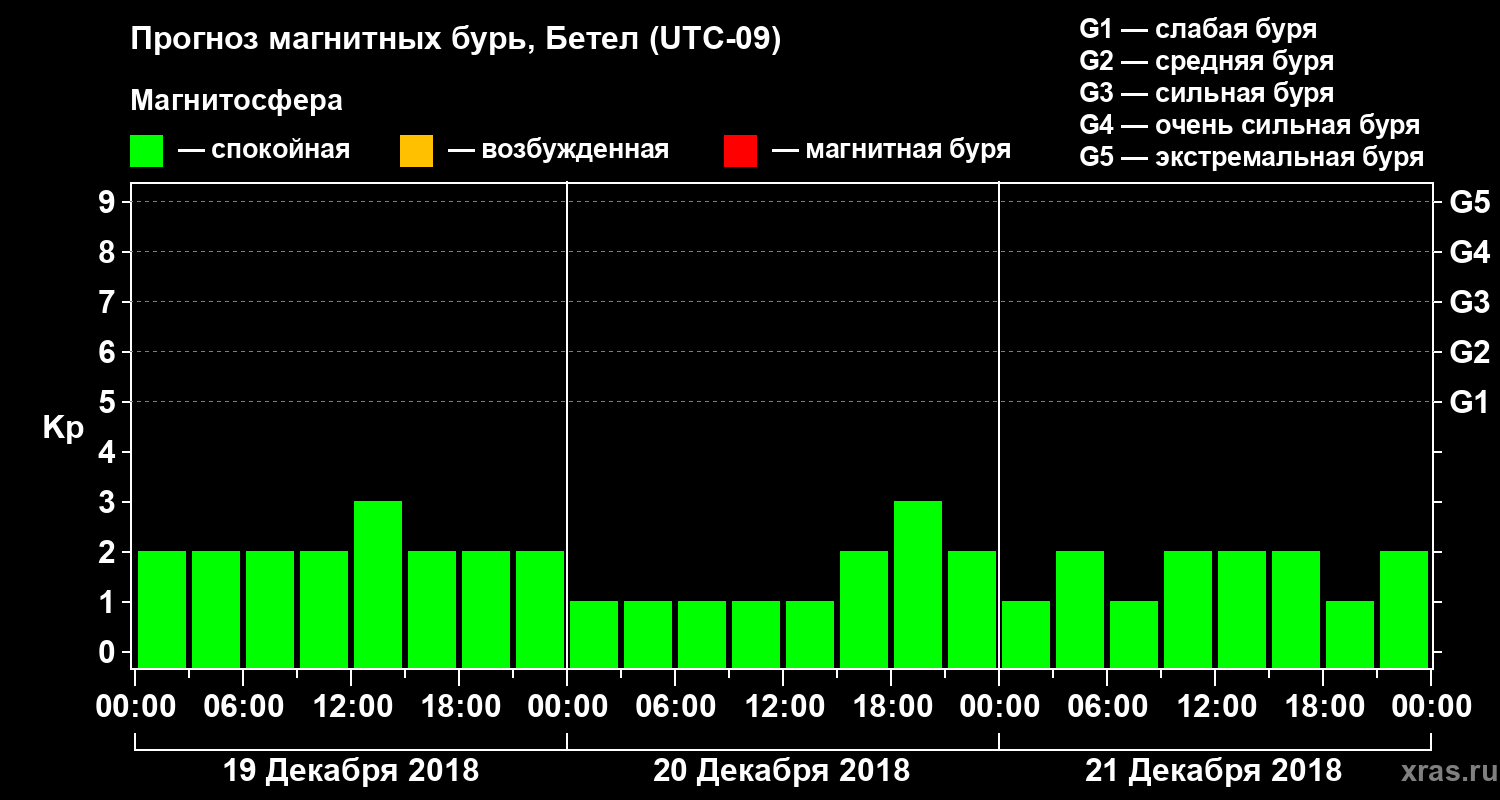 Прогноз магнитных бурь в Бетеле — 19 декабря 2018 года