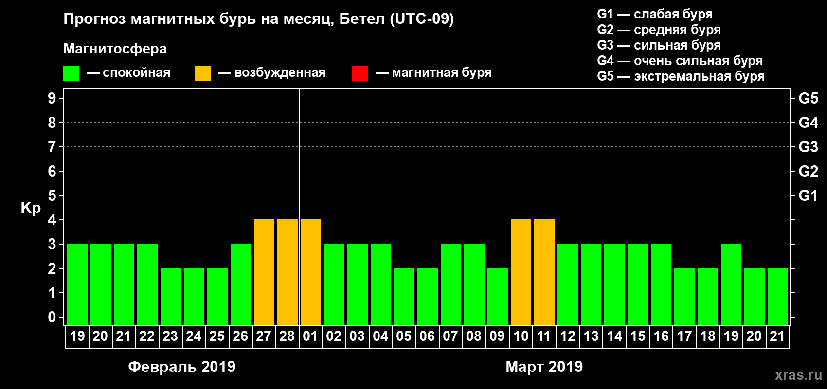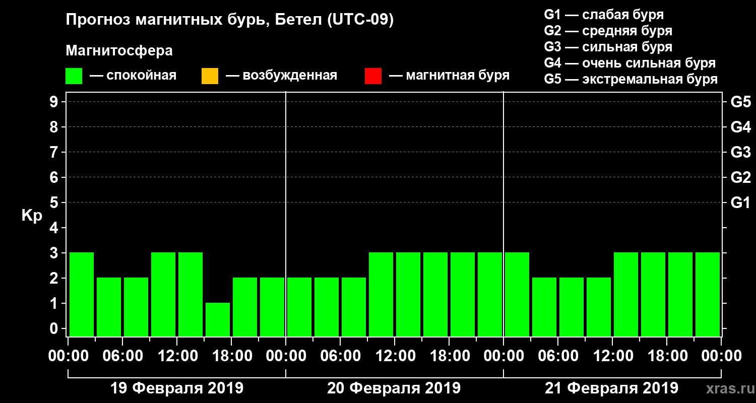 Прогноз магнитных бурь в Бетеле — 19 февраля 2019 года