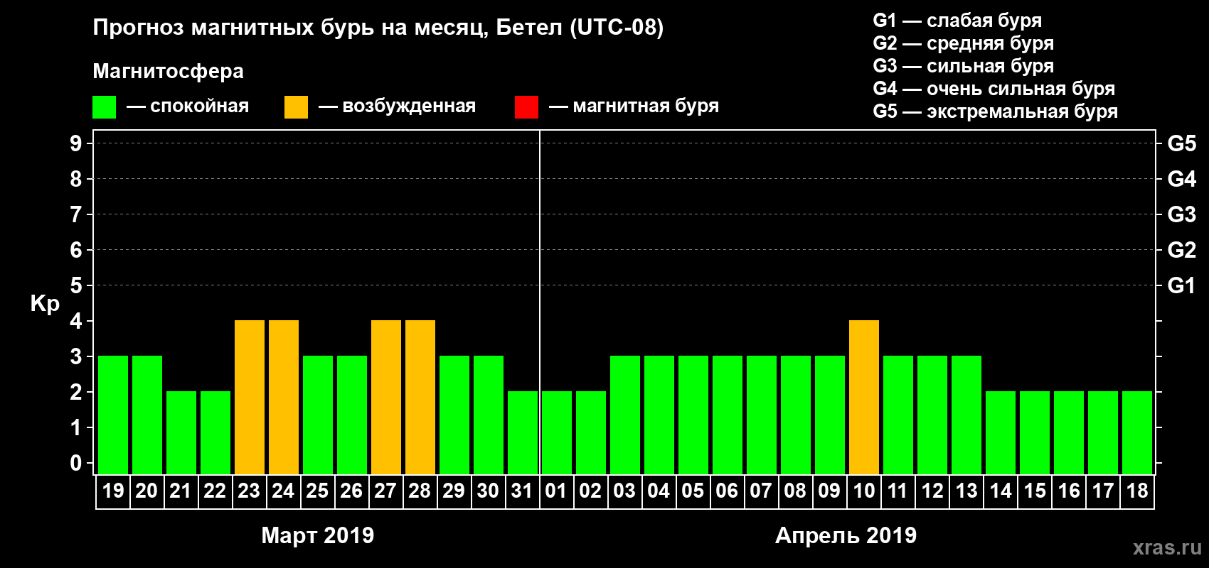Прогноз магнитных бурь в Бетеле — 19 марта 2019 года