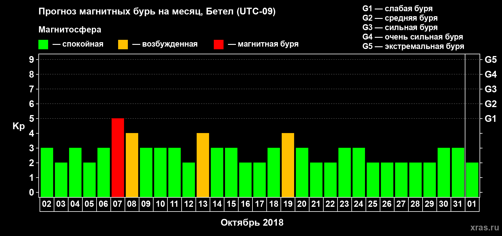 Прогноз магнитных бурь в Бетеле — 2 октября 2018 года