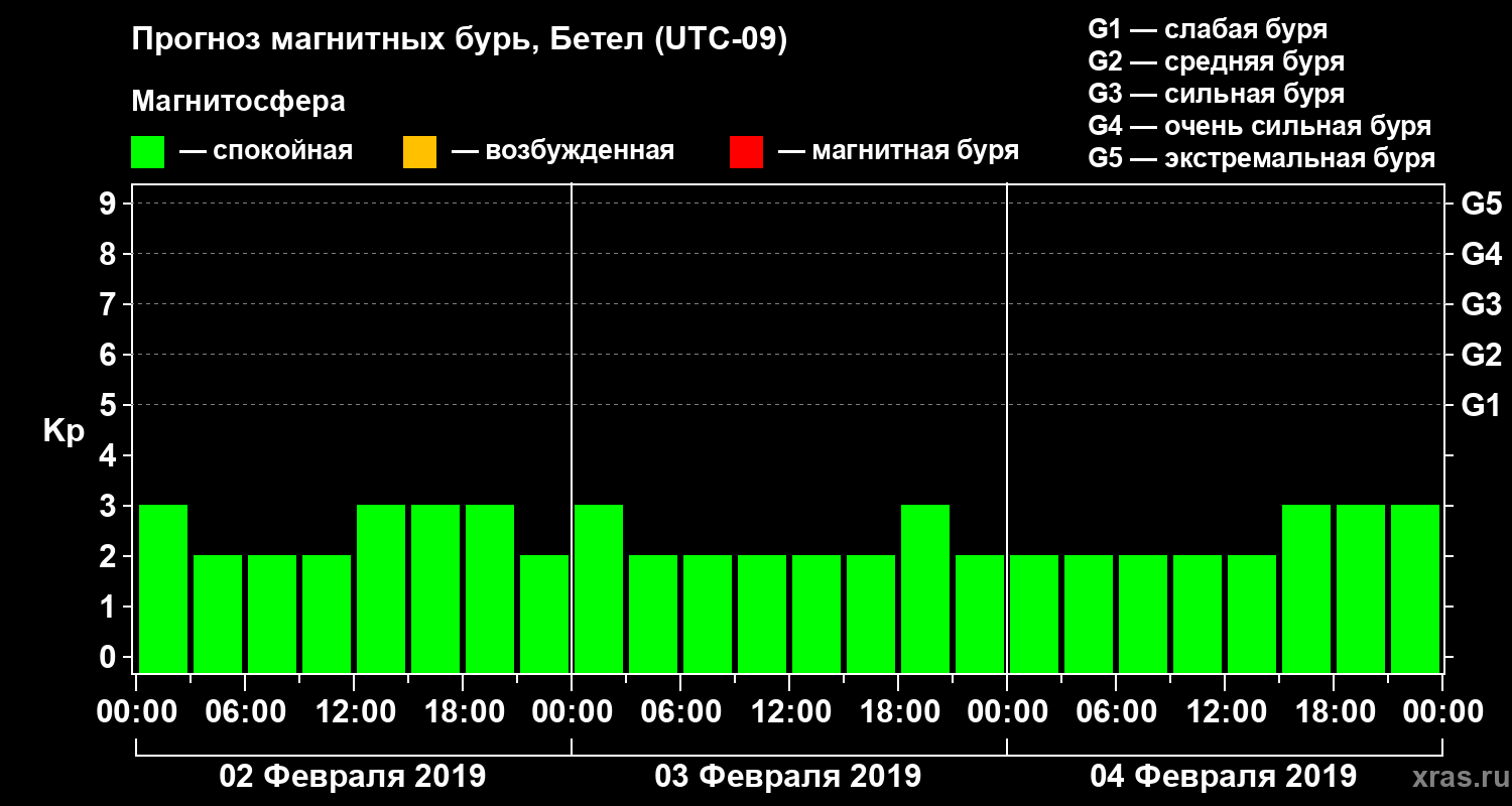 Прогноз магнитных бурь в Бетеле — 2 февраля 2019 года