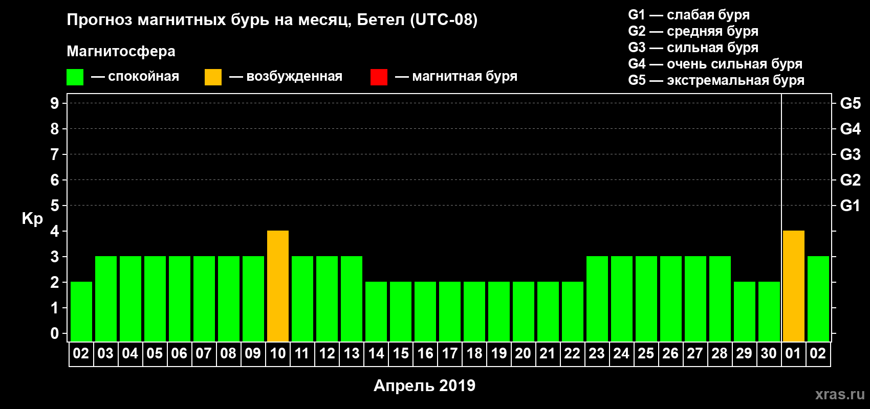 Прогноз магнитных бурь в Бетеле — 2 апреля 2019 года