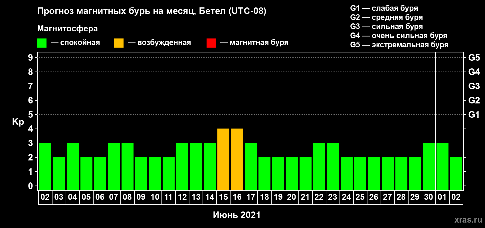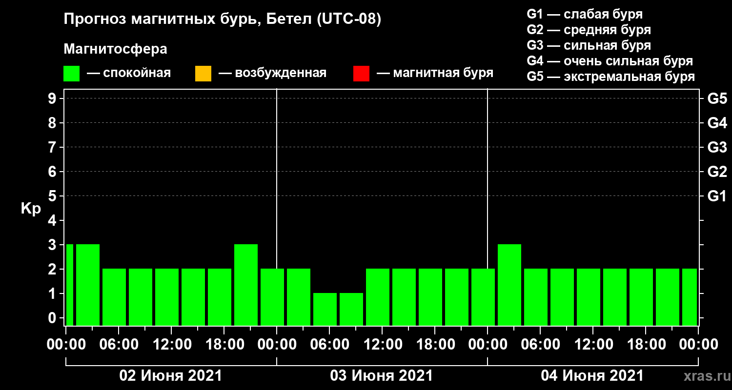 Прогноз магнитных бурь в Бетеле — 2 июня 2021 года
