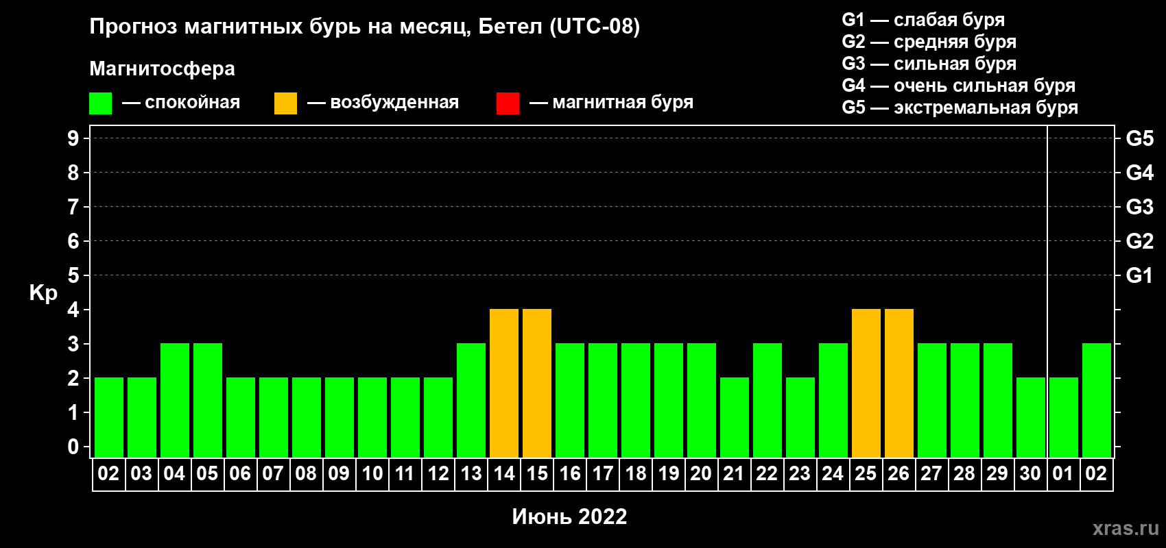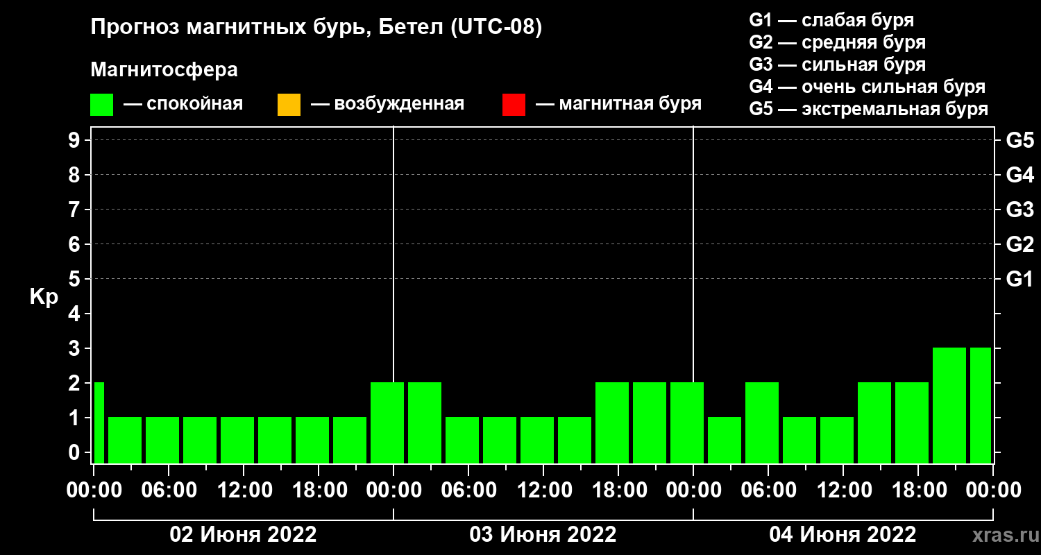 Прогноз магнитных бурь в Бетеле — 2 июня 2022 года