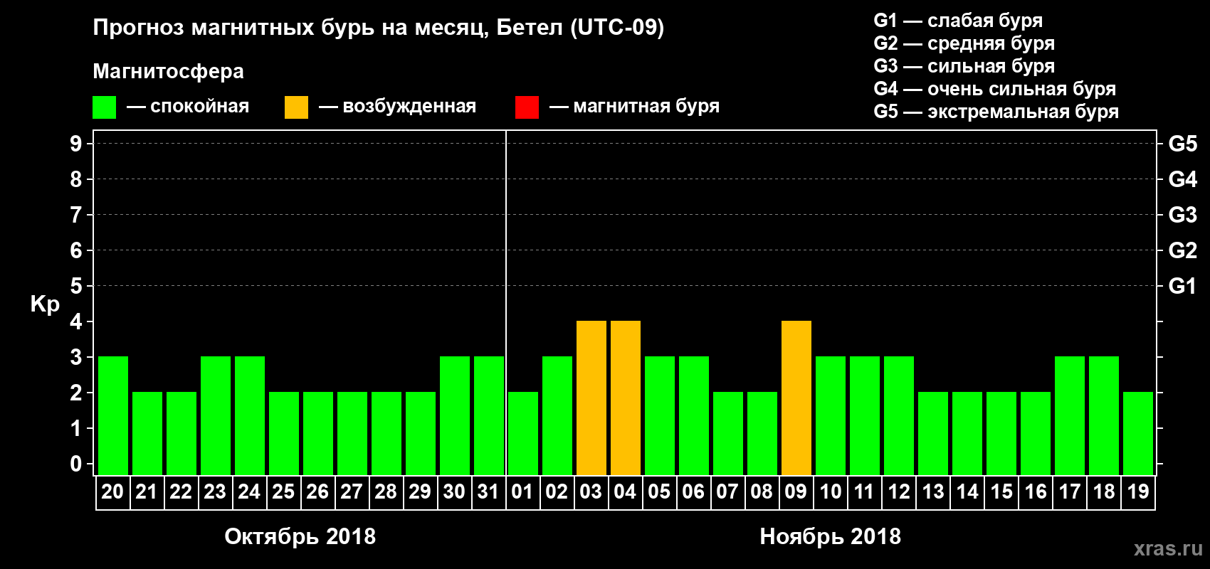 Прогноз магнитных бурь в Бетеле — 20 октября 2018 года