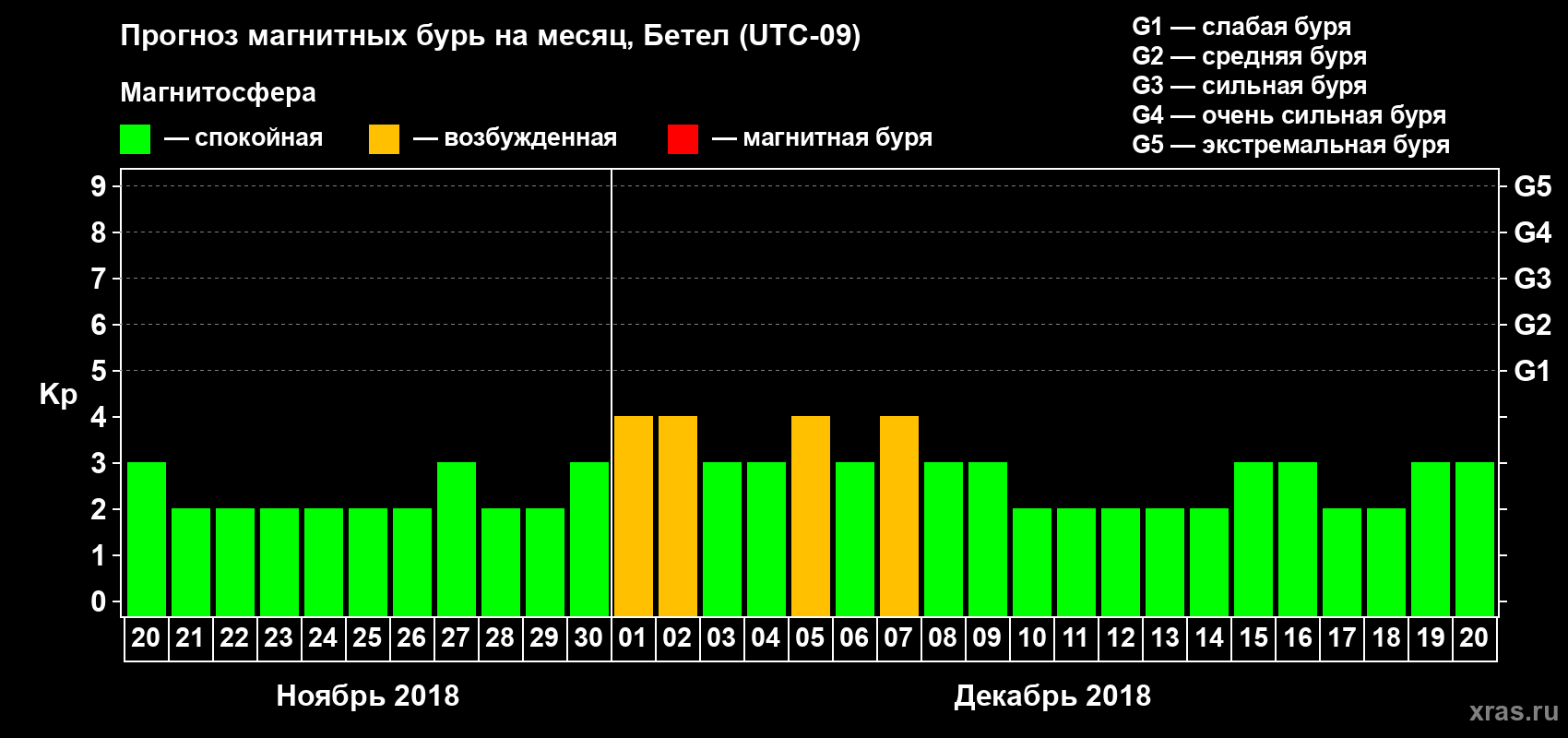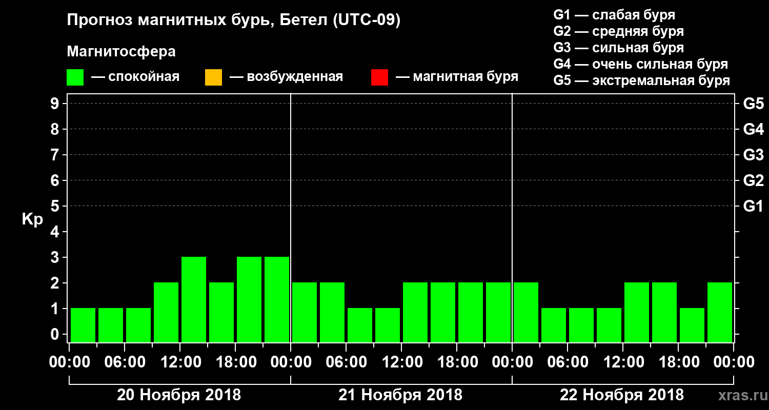 Прогноз магнитных бурь в Бетеле — 20 ноября 2018 года