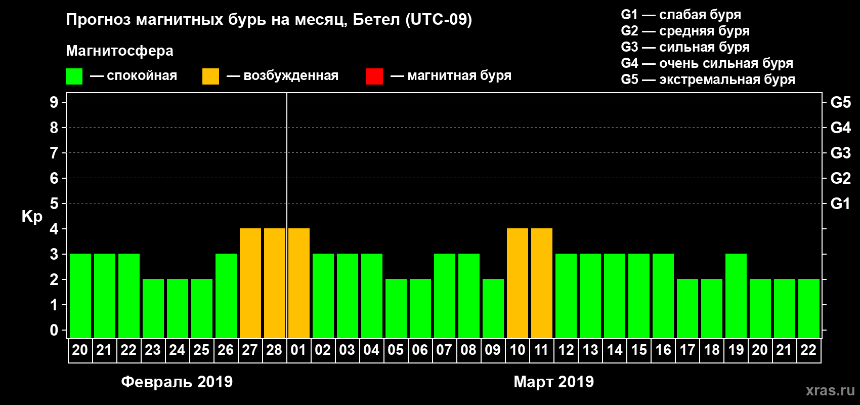 Прогноз магнитных бурь в Бетеле — 20 февраля 2019 года