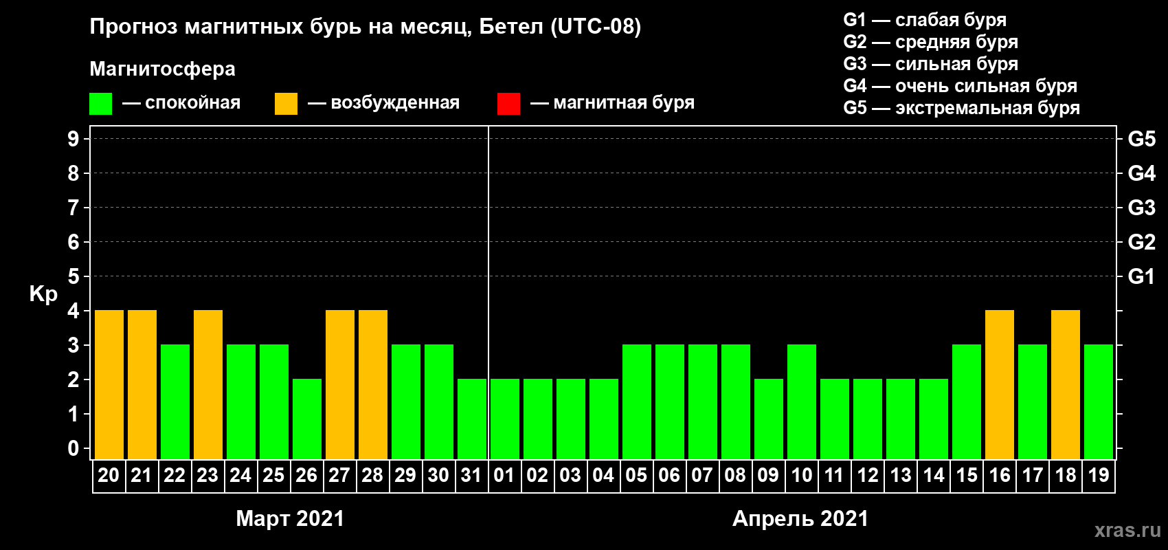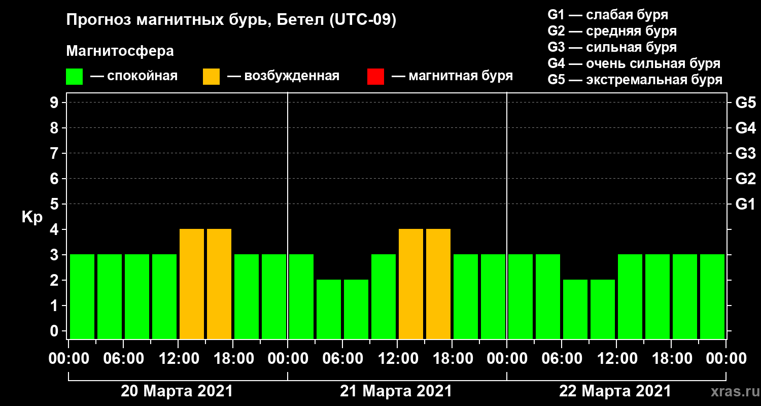 Прогноз магнитных бурь в Бетеле — 20 марта 2021 года