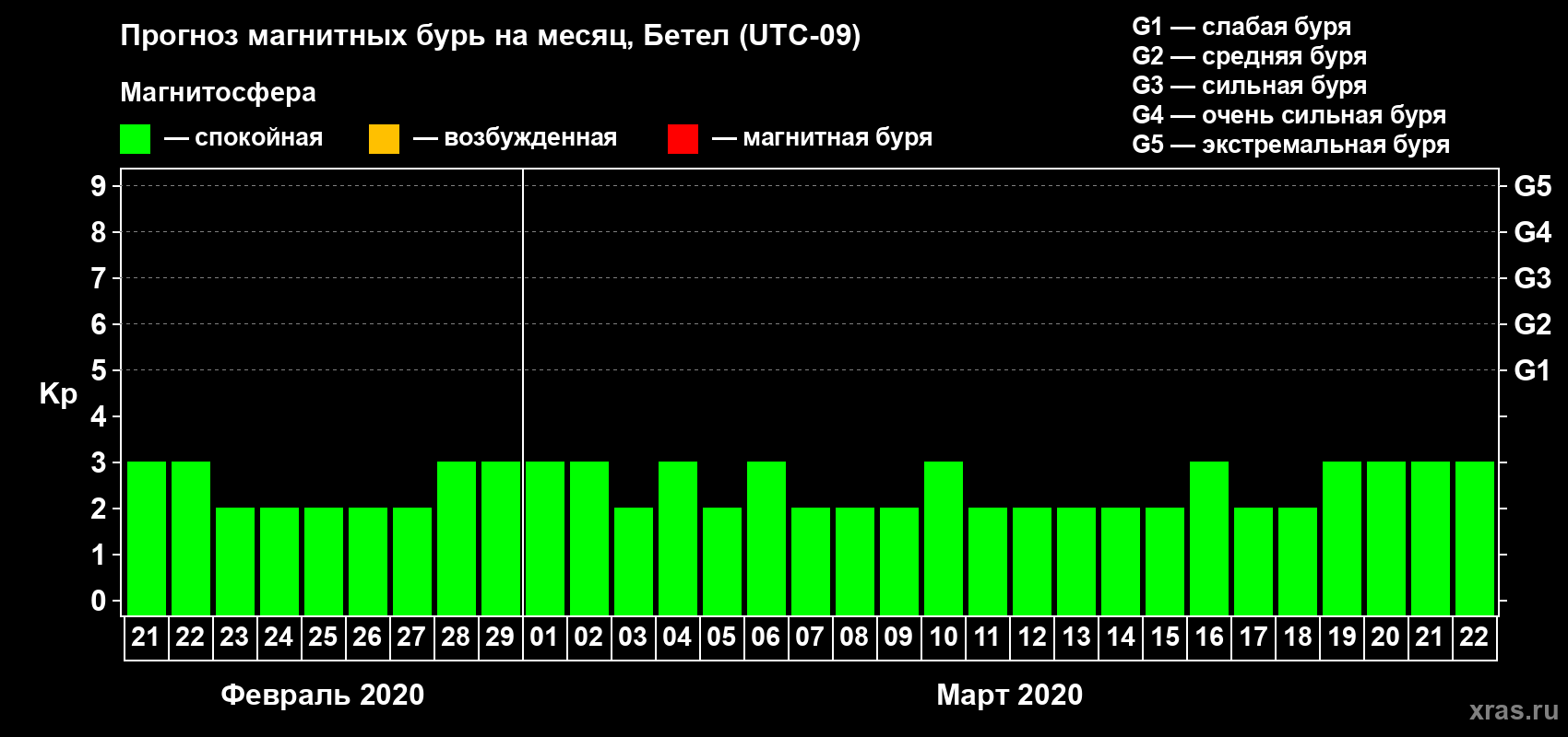 Прогноз магнитных бурь в Бетеле — 21 февраля 2020 года