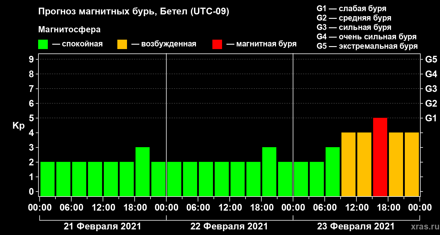 Прогноз магнитных бурь в Бетеле — 21 февраля 2021 года