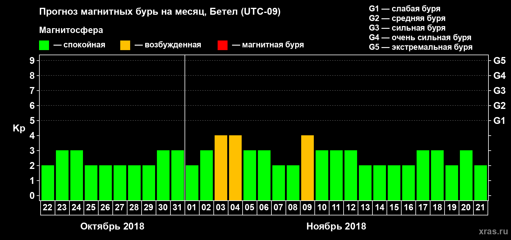 Прогноз магнитных бурь в Бетеле — 22 октября 2018 года