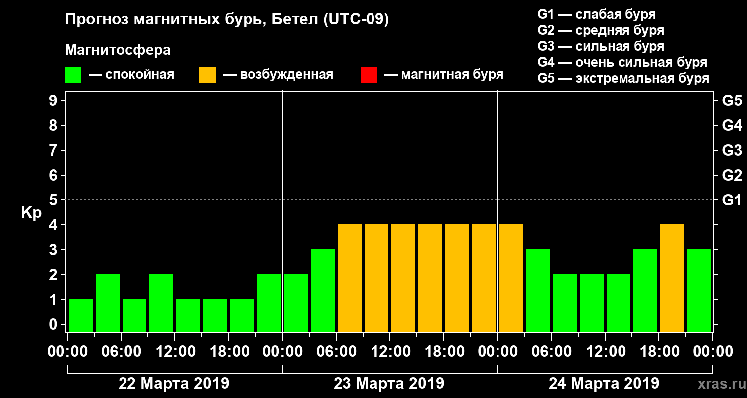 Прогноз магнитных бурь в Бетеле — 22 марта 2019 года