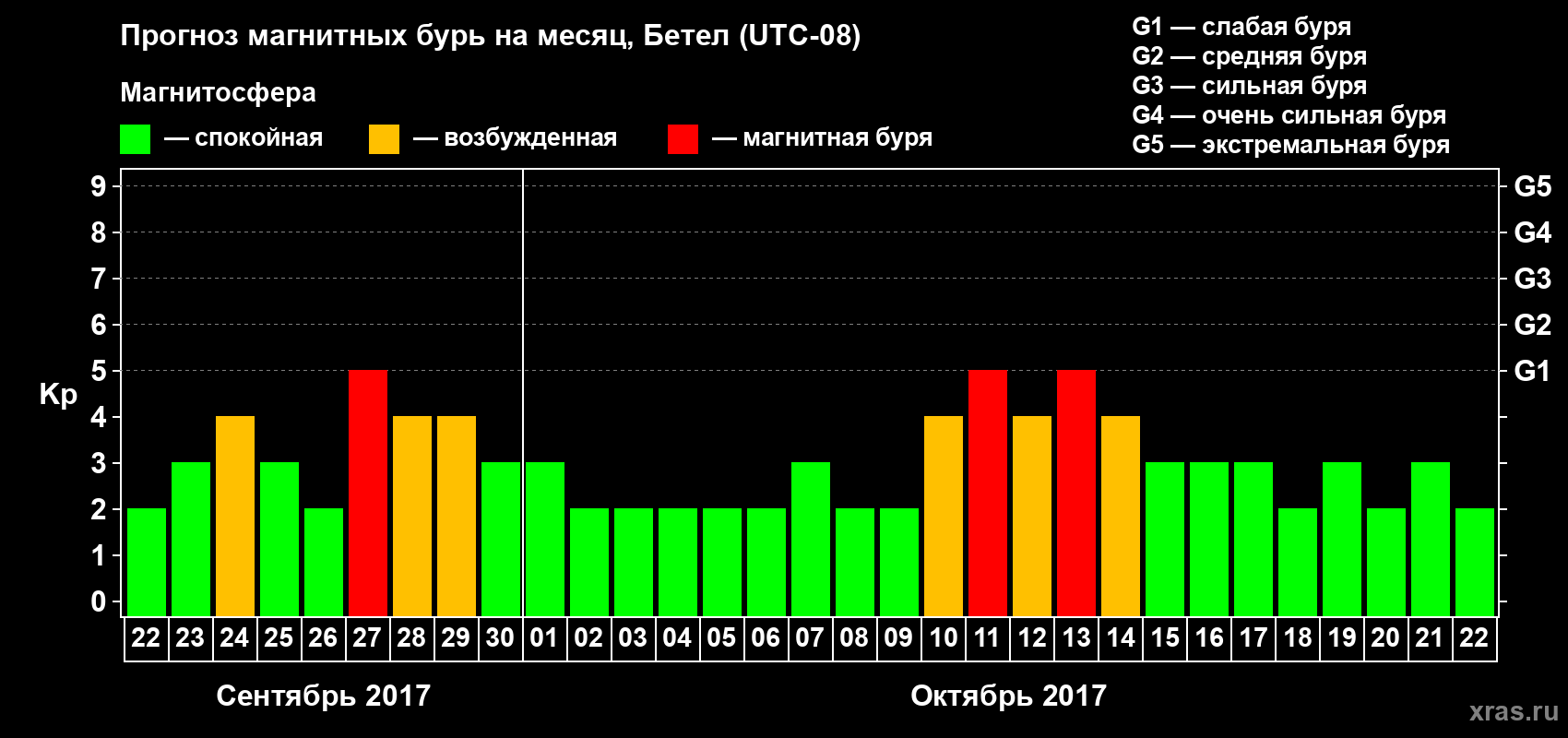 Прогноз магнитных бурь в Бетеле — 22 сентября 2017 года