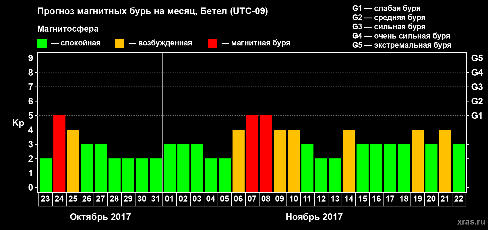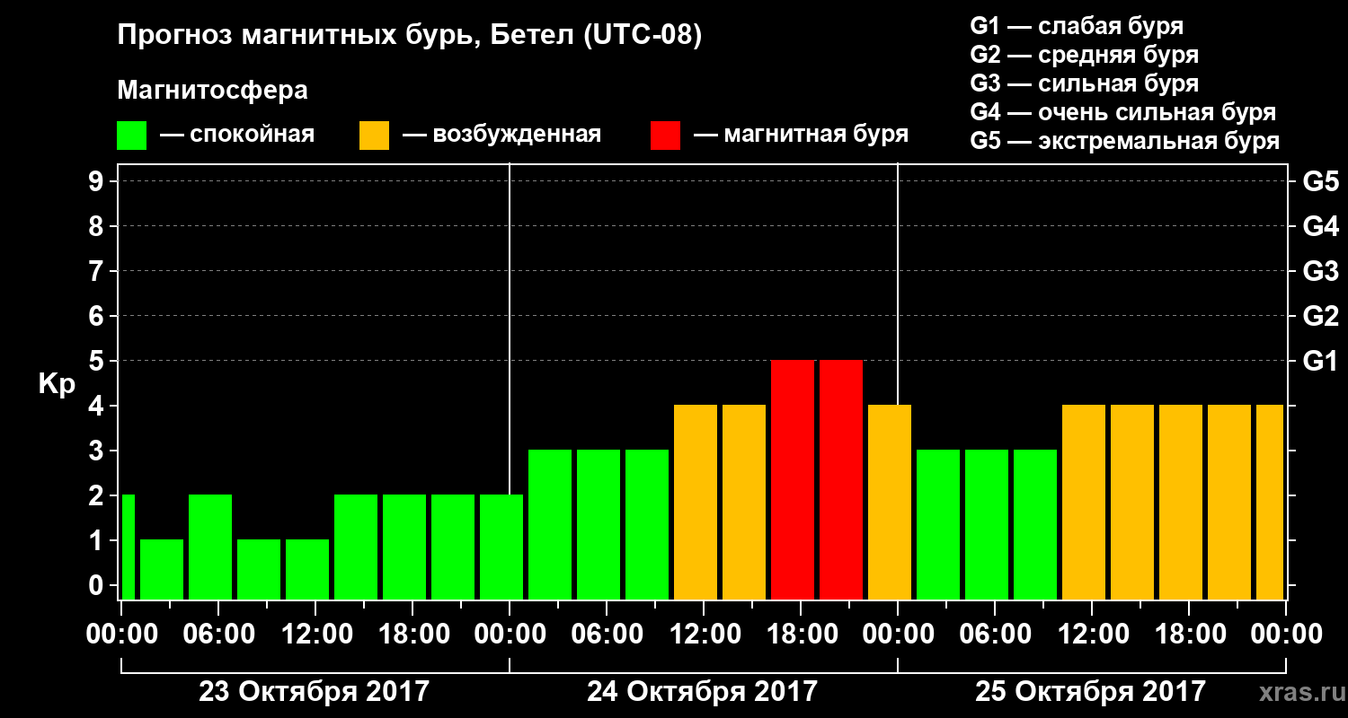 Прогноз магнитных бурь в Бетеле — 23 октября 2017 года