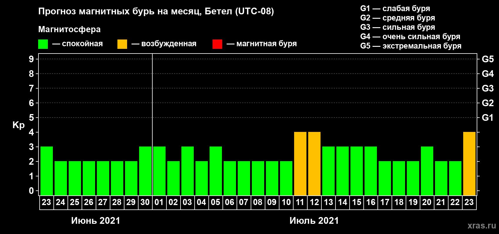 Прогноз магнитных бурь в Бетеле — 23 июня 2021 года