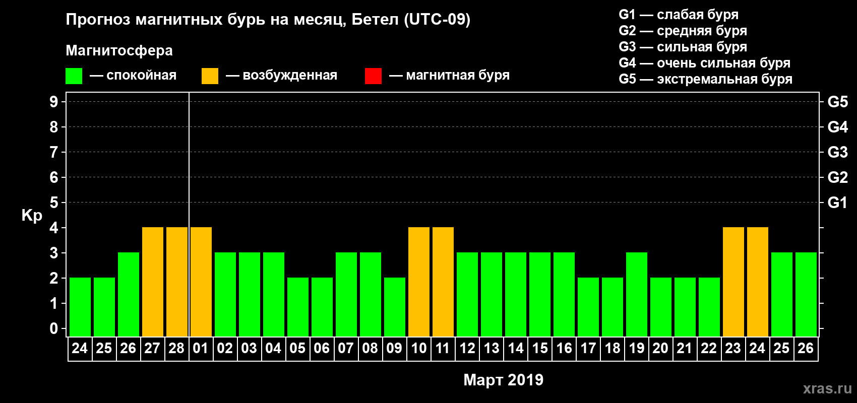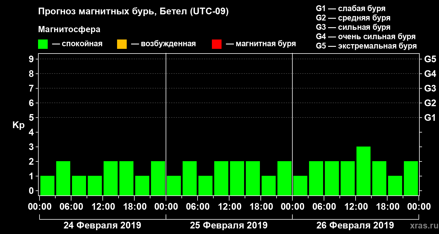 Прогноз магнитных бурь в Бетеле — 24 февраля 2019 года