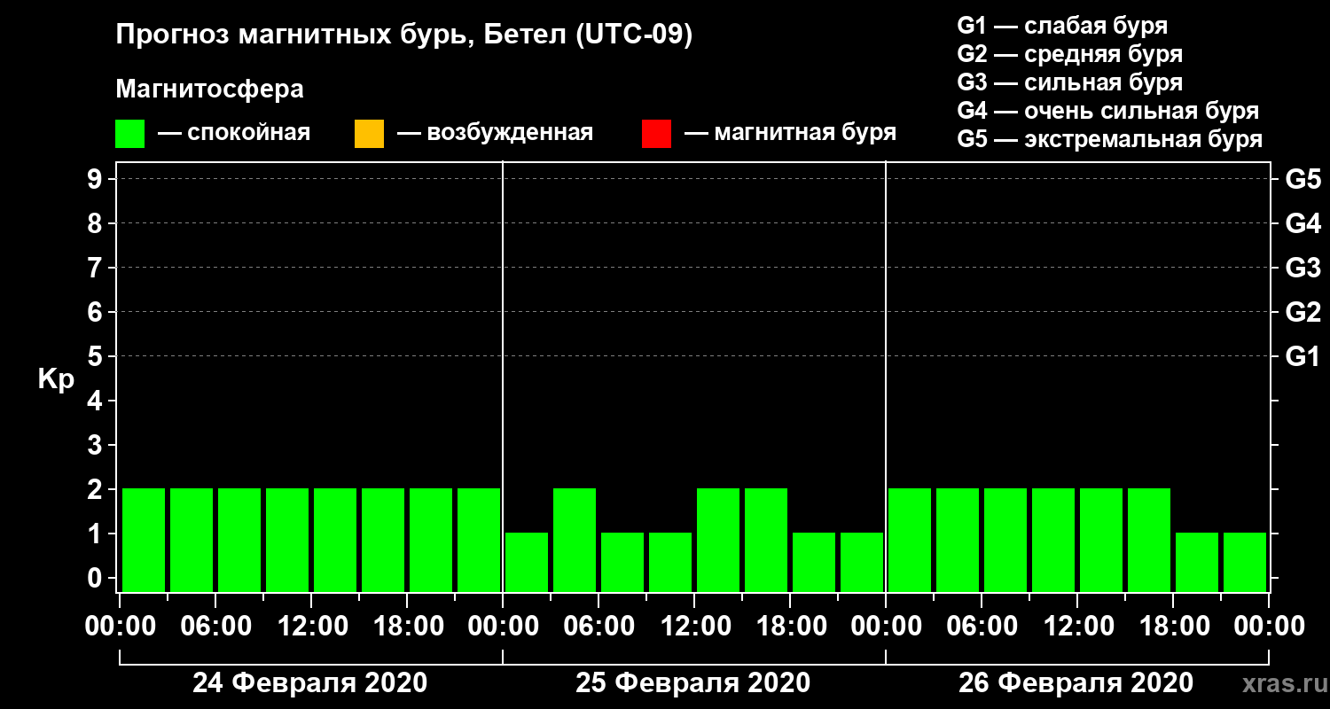 Прогноз магнитных бурь в Бетеле на 24 февраля 2020 года