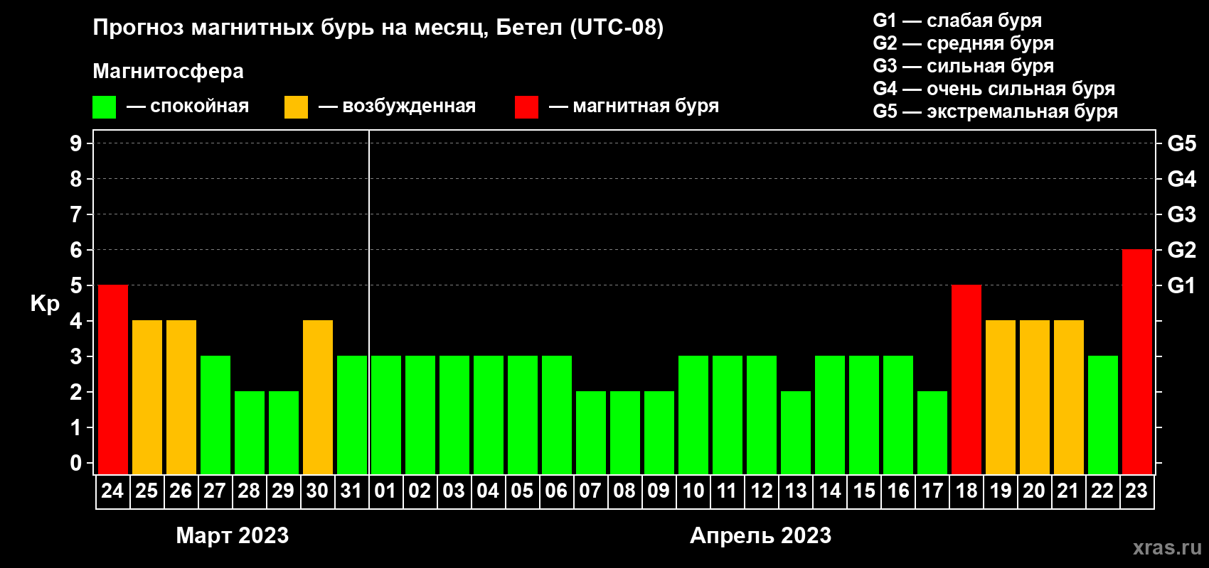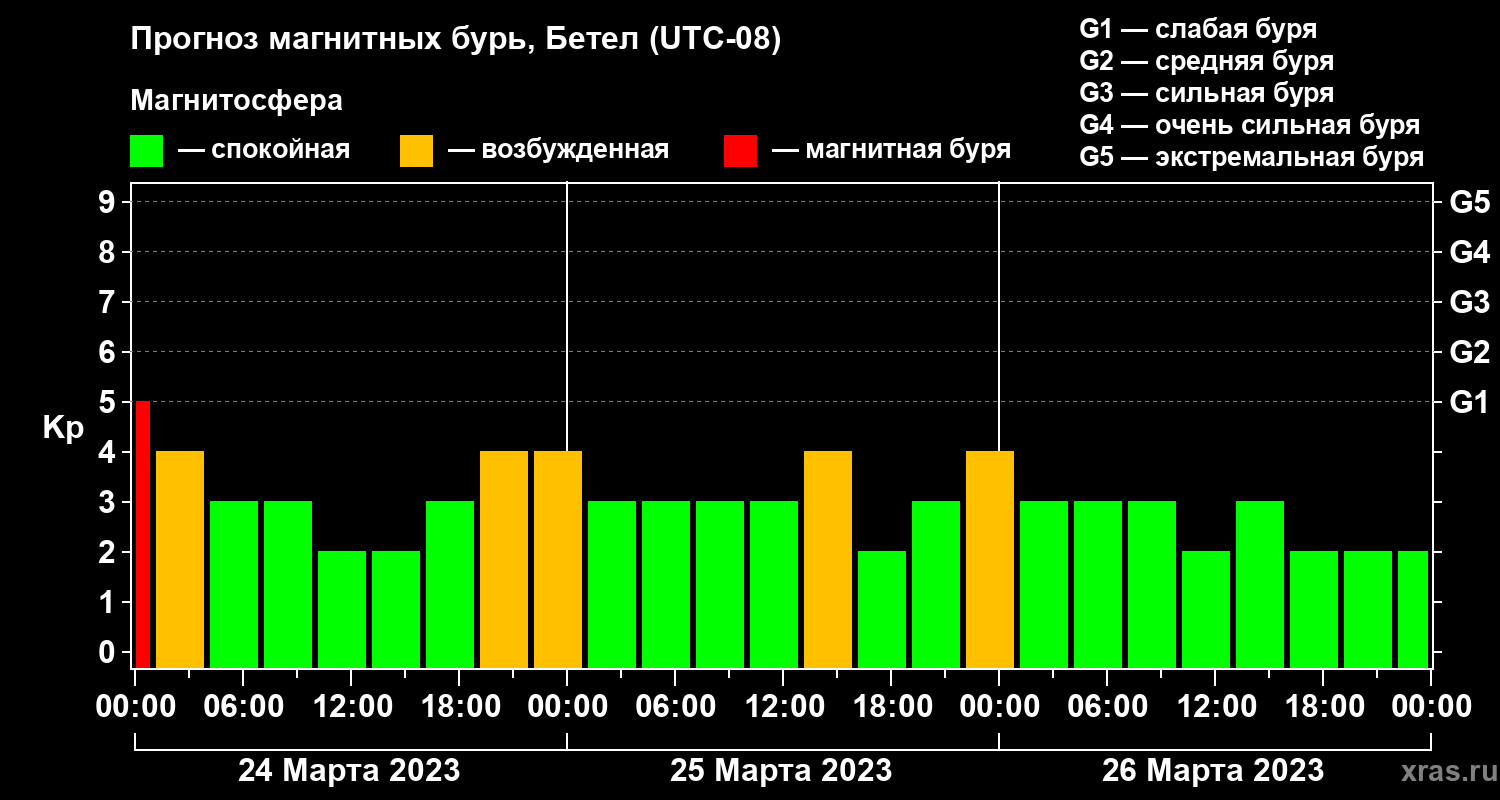 Прогноз магнитных бурь в Бетеле — 24 марта 2023 года