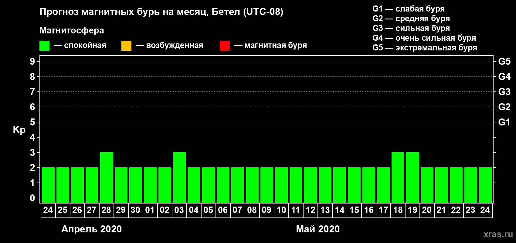 Прогноз магнитных бурь в Бетеле — 24 апреля 2020 года
