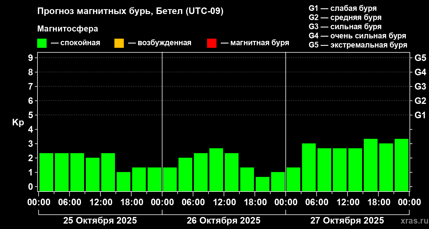 Прогноз магнитных бурь в Бетеле — 25 октября 2025 года