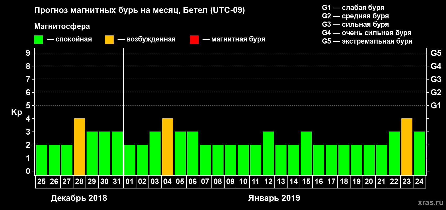 Прогноз магнитных бурь в Бетеле — 25 декабря 2018 года