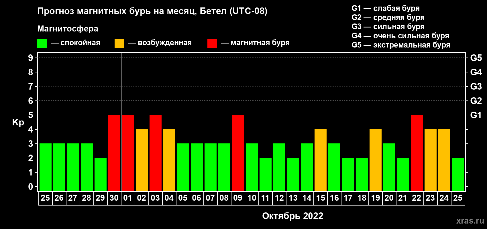 Прогноз магнитных бурь в Бетеле — 25 сентября 2022 года