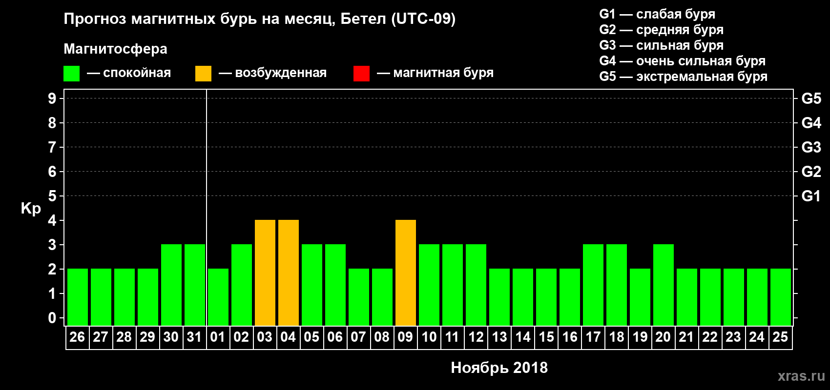 Прогноз магнитных бурь в Бетеле — 26 октября 2018 года