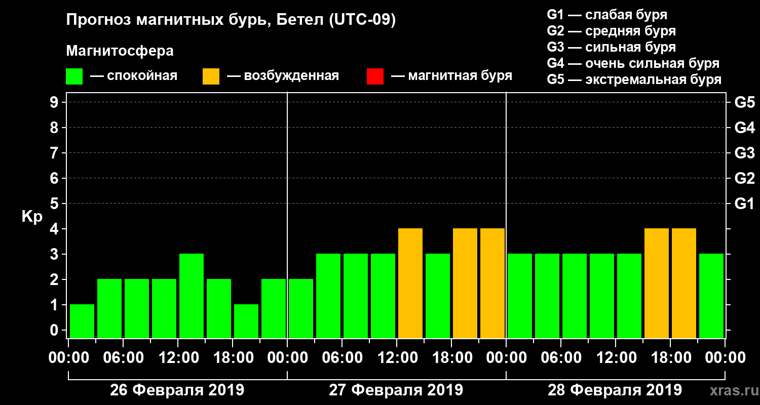 Прогноз магнитных бурь в Бетеле — 26 февраля 2019 года
