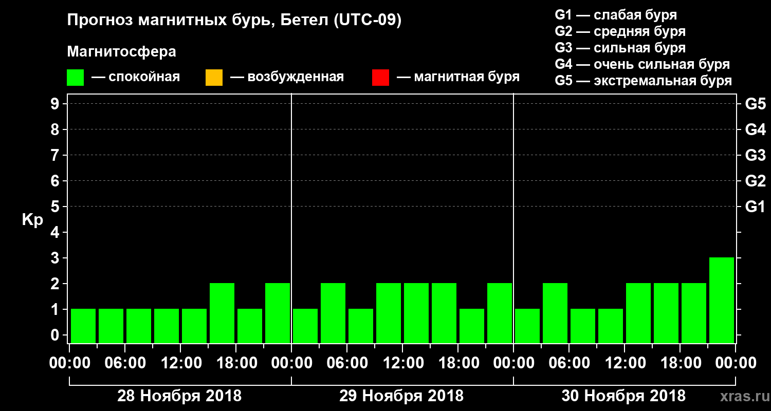 Прогноз магнитных бурь в Бетеле — 28 ноября 2018 года