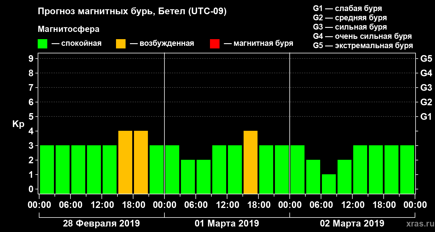 Прогноз магнитных бурь в Бетеле — 28 февраля 2019 года