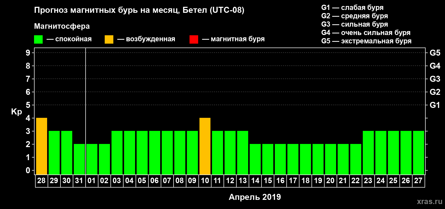 Прогноз магнитных бурь в Бетеле — 28 марта 2019 года