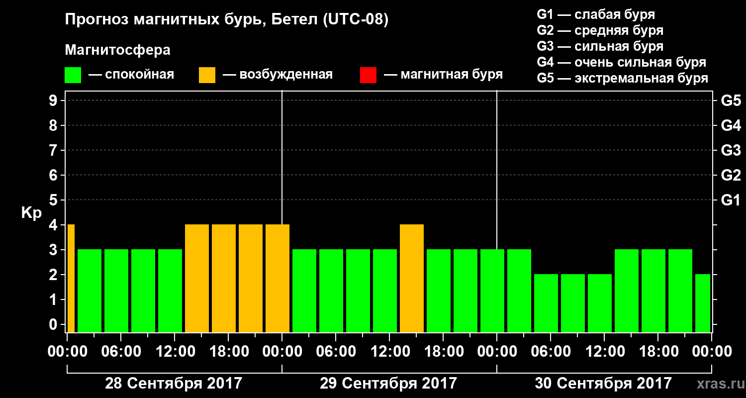 Прогноз магнитных бурь в Бетеле — 28 сентября 2017 года