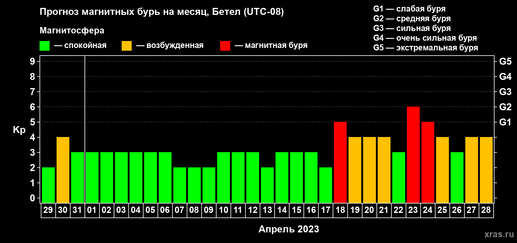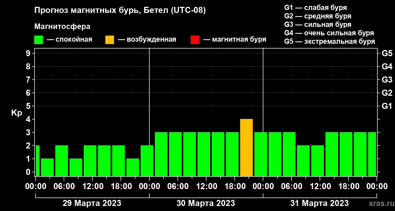 Прогноз магнитных бурь в Бетеле — 29 марта 2023 года