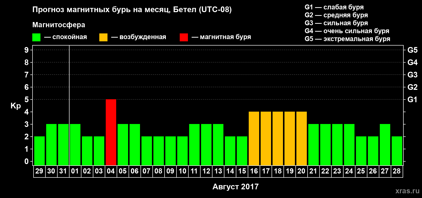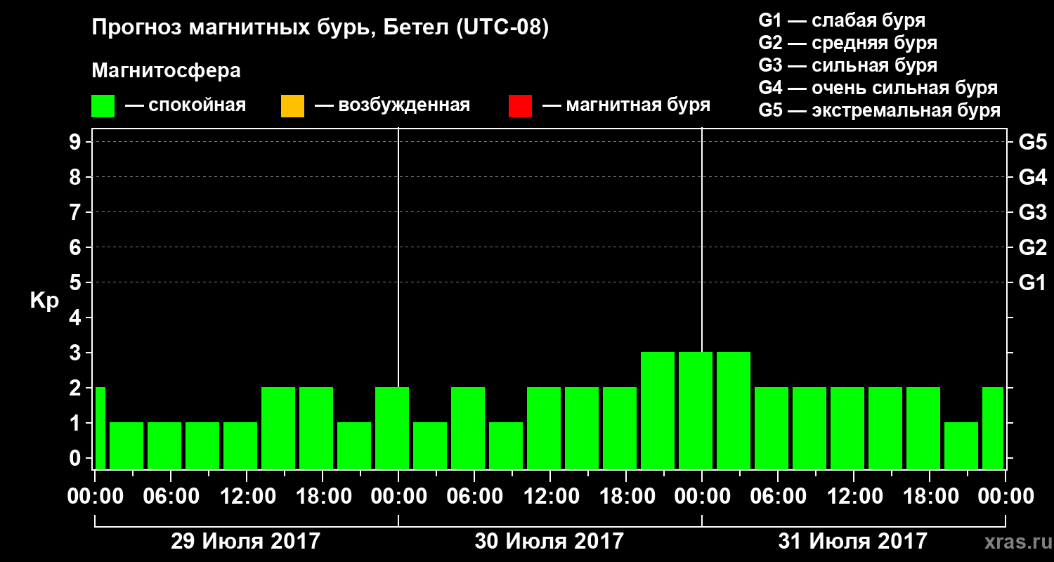 Прогноз магнитных бурь в Бетеле — 29 июля 2017 года