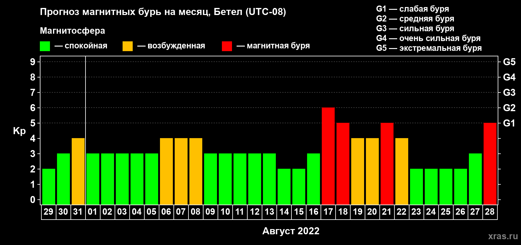 Прогноз магнитных бурь в Бетеле — 29 июля 2022 года
