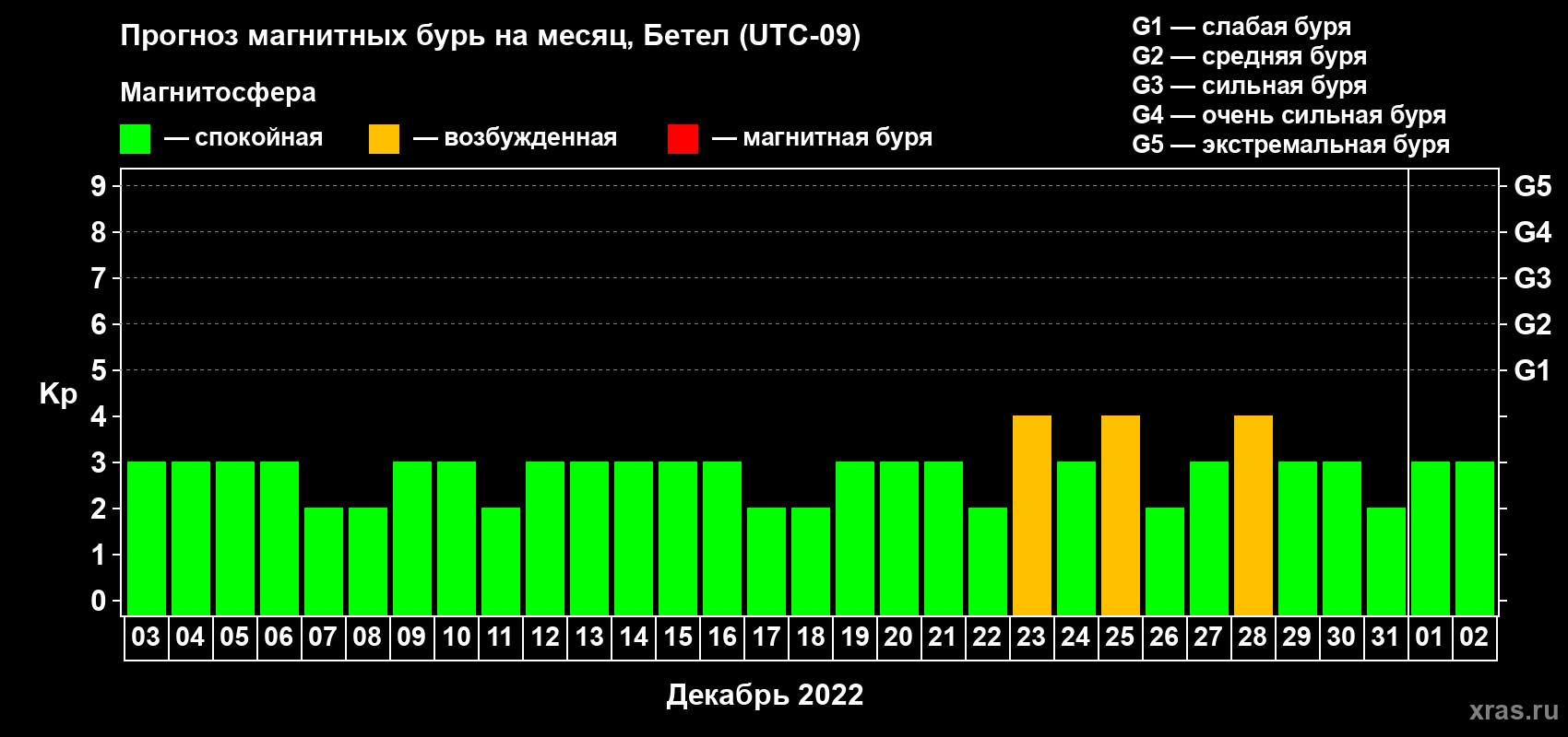 Прогноз магнитных бурь в Бетеле — 3 декабря 2021 года